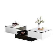 Table basse extensible rectangulaire gris+blanc - 60x102 cm