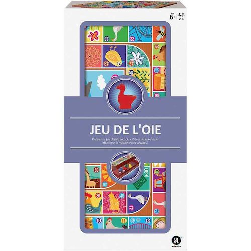 pour jouer en famille ou entre amis. Le but du jeu est dêtre le premier à arriver sur la dernière case. Pièces en bois peint. Plateau de jeu pliable, dimensions du plateau 29, 5 x 29, 5 cm. Idéal pour les voyages. 2-4 joueurs. Dès 6 ans.