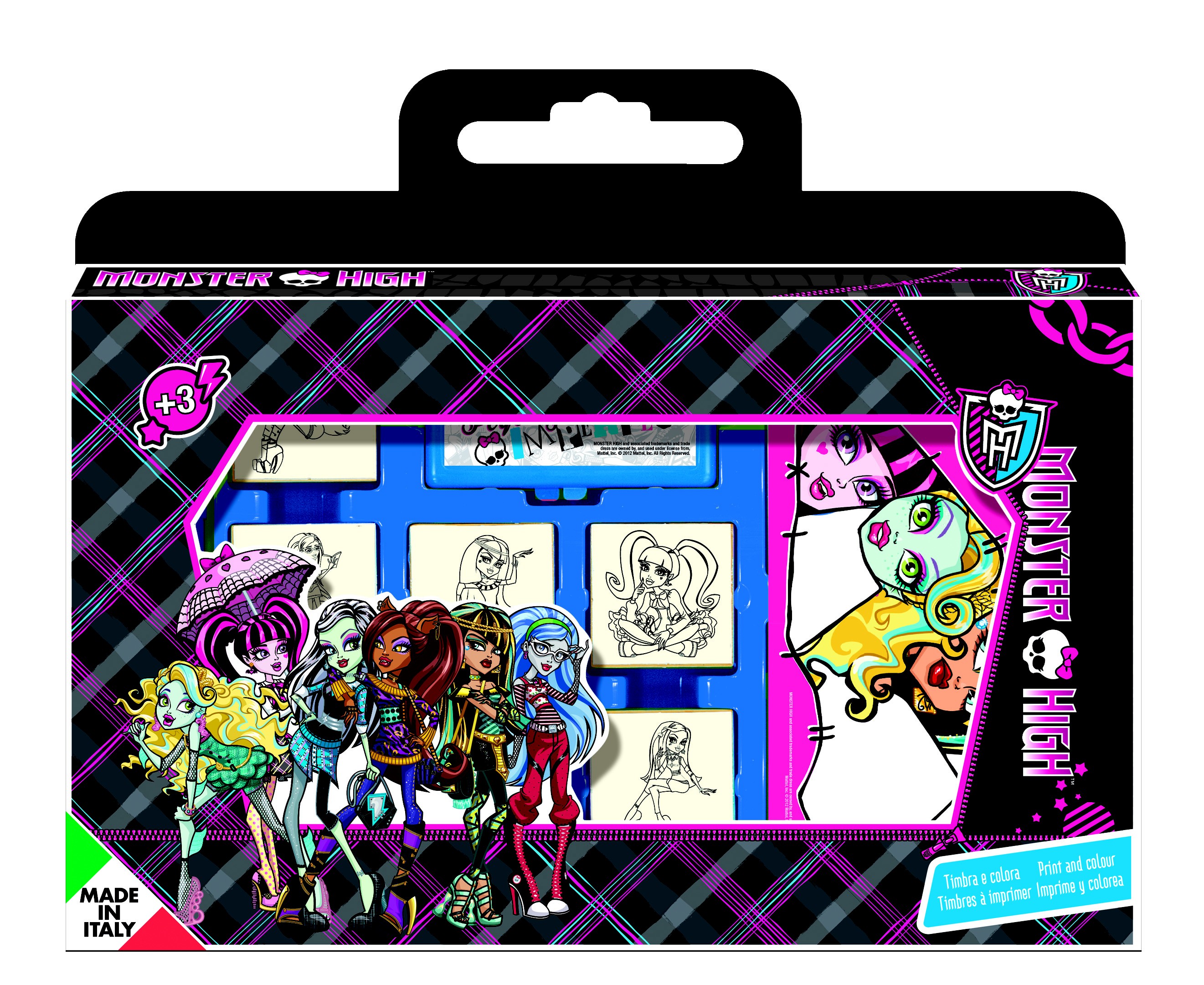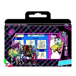 Ce coffret comporte 7 modèles de tampons à l’effigie des poupées Monster High et des accessoires de coloriage pour des superbes créations.