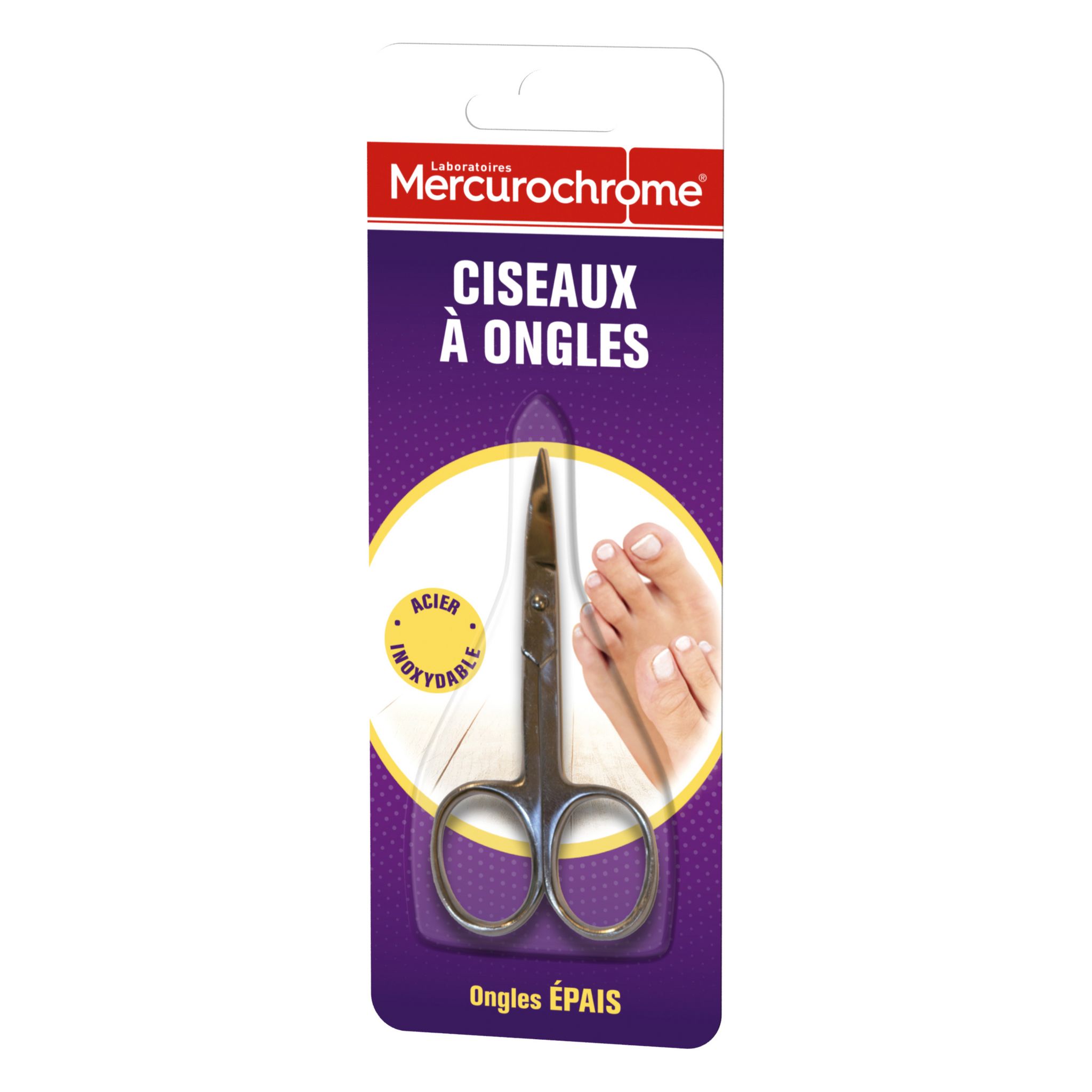 Les ciseaux à ongles des Laboratoires Mercurochrome® vous assurent une coupe nette et précise des ongles. Robustes et efficaces, ces ciseaux sont adaptés aux ongles durs et épais des orteils.