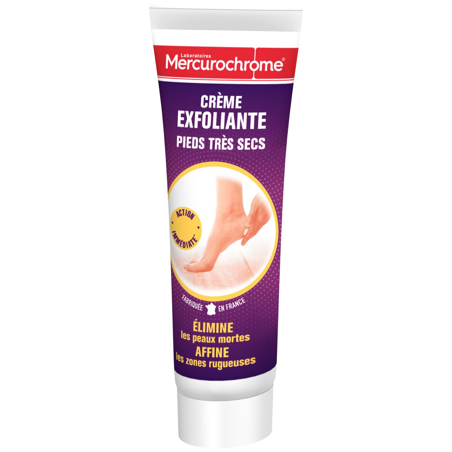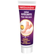 La crème exfoliante des Laboratoires Mercurochrome® exfolie en douceur les pieds secs et abîmés. Elle agit sans irriter pour éliminer les peaux mortes et affiner les zones rugueuses. Indispensable des routines de soins, la crème laisse vos pieds doux*.