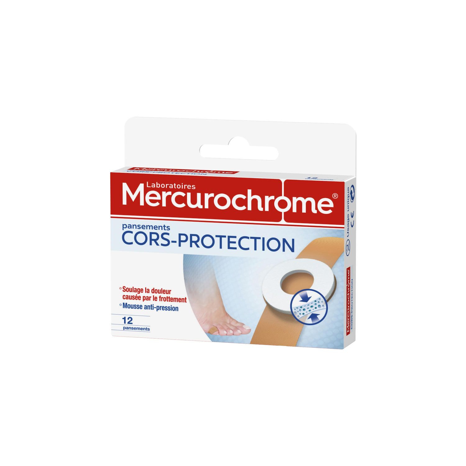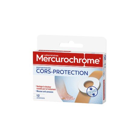Les pansements cors des Laboratoires Mercurochrome PROTÈGENT ET SOULAGENT les cors et durillons des frottements.