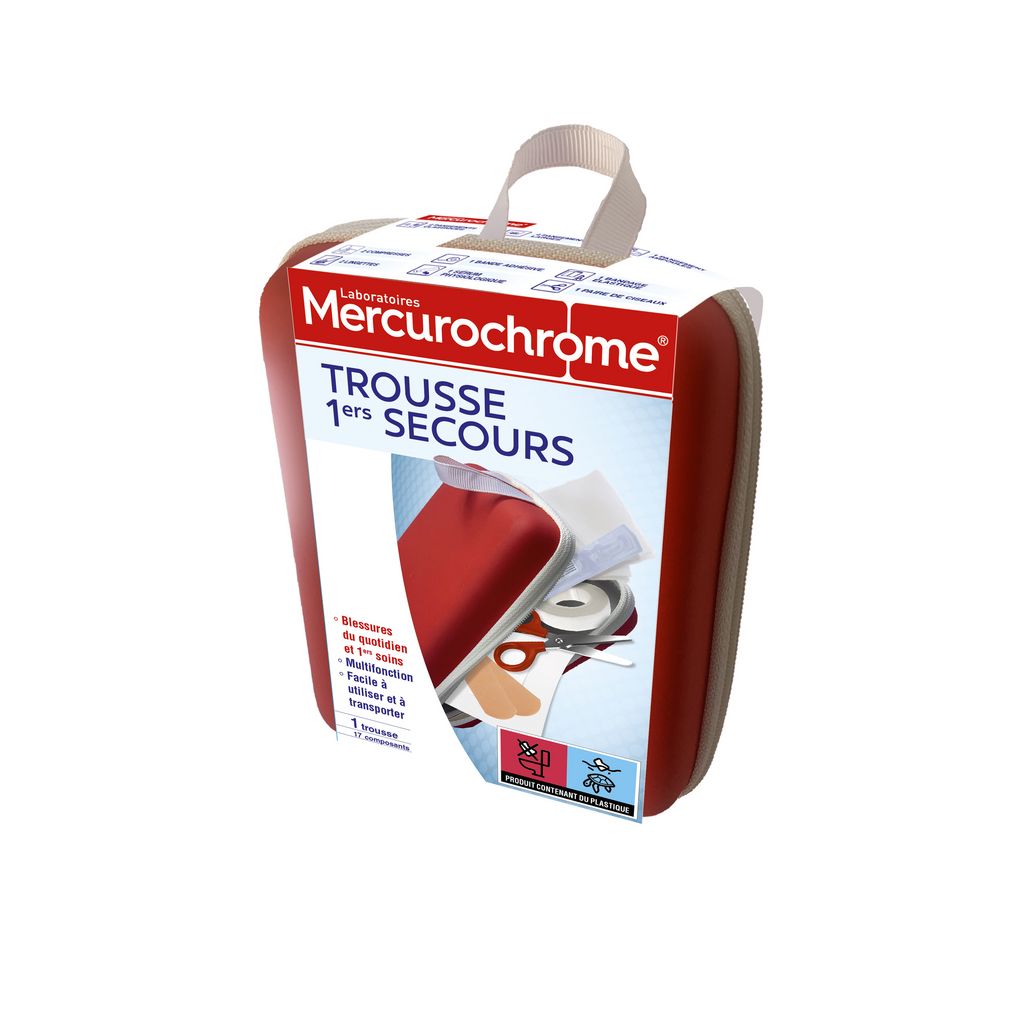 Découvrez la trousse 1ers secours Mercurochrome, elle contient les produits indispensables pour les premiers soins et blessures du quotidien. A la maison ou en extérieur, son contenu facile à utiliser vous permettra de subvenir aux petits accidents du quotidien. Sa trousse maniable et légère est idéale pour vos voyages et activités de plein air.