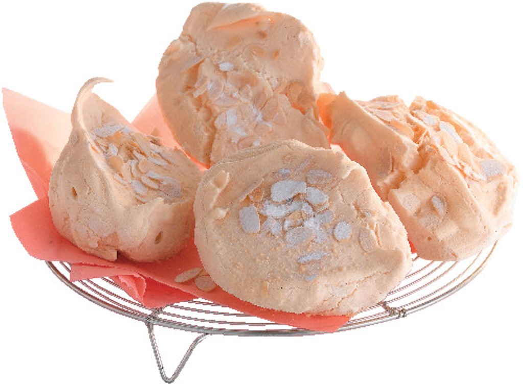 Meringue à l'ancienne 90,6% (blancs d'OEUFS 29,9%, sucre 28,4%, sucre glace 26,7% (sucre 97%, amidon de mais 3% 26,7%), AMANDES effilées 5,6%), AMANDES effilées 6,2%, sucre glace 3,1% (sucre 97%, amidon de mais 3% 3,1%).
