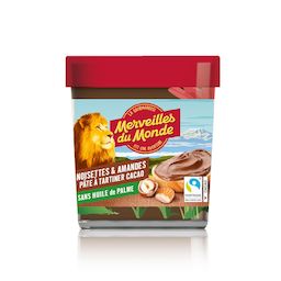 Sucre, huile végétale (colza, beurre de cacao, tournesol), NOISETTES 13.5%, AMANDES 5%, LAIT entier en poudre, cacao maigre 5%, lait écrémé en poudre, émulsifiant (lécithines), extrait naturel de vanille
