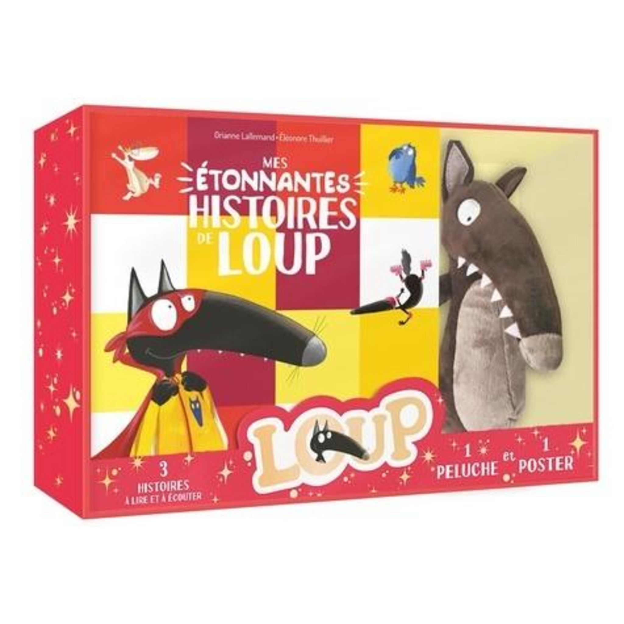 Le nouveau coffret de Loup ! Partez à la découverte de l'univers de ce fantastique héros ! Un coffret combinant trois histoires et une peluche de notre héros préféré ! Tout pour revivre, pendant des heures, les aventures de Loup. Trois histoires parmi les plus connues, grand altique du catalogue Loup : - Le loup qui ne voulait plus marcher - Le loup qui voulait être un super-héros - Le loup qui voulait être heureux