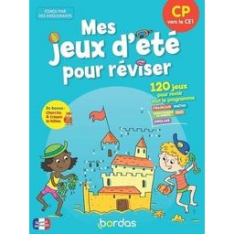 Mes jeux d'été pour réviser - du CP vers le CE1 : un cahier ludique et rassurant pour revoir le programme de CP en français, maths, anglais, EMC et questionner le monde. Mots croisés, coloriages codés, labyrinthes... votre enfant va s'amuser en révisant pour préparer sa rentrée en CE1 ! Toutes les matières sont abordées par le jeu dans ce cahier via 120 activités ludiques et bienveillantes conçues par des enseignants. Toutes les notions en français, maths, anglais, et questionner le monde (espace, temps, EMC) 2 jeux/page Des activités ludiques pour que l'enfant progresse et ait envie de faire son cahier de vacances Ce cahier de vacances propose une notion à réviser par page avec : Une rubrique Echauffe-toi sous forme de jeu pour introduire la notion et remobiliser les connaissances acquises Un jeu d'entraînement sur chaque page joliment illustré pour réviser le programme de CP en s'amusant ! Un jeu Cherche et Trouve tout au long du cahier avec une petite mascotte à trouver dans les pages Les + : Des consignes simples pour réviser en toute autonomie Des jeux joliment illustrés Des mémos pour chaque leçon abordée en fin de cahier et organisés par discipline Les solutions des jeux dans un encart central détachable