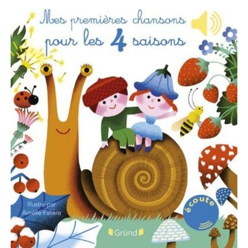 A la découverte des saisons en musique ! Avec ses puces sonores musicales, ce recueil est unique. Sur chaque page, l'enfant recherche dans l'illustration le petit bouton qui déclenchera la musique. De l'hiver au printemps, en été et en automne, on écoute : Au fil des saisons (Corinne Albaut) , Le petit flocon , Mars attaque (Corinne Albaut) , La fête à la grenouille , Le temps des cerises et Vent frais . Une joyeuse promenade à la découverte des altiques de ce thème et des créations de Corinne Albaut. Les illustrations gaies et colorées d'Amélie Falière accompagnent cette joyeuse découverte des saisons !