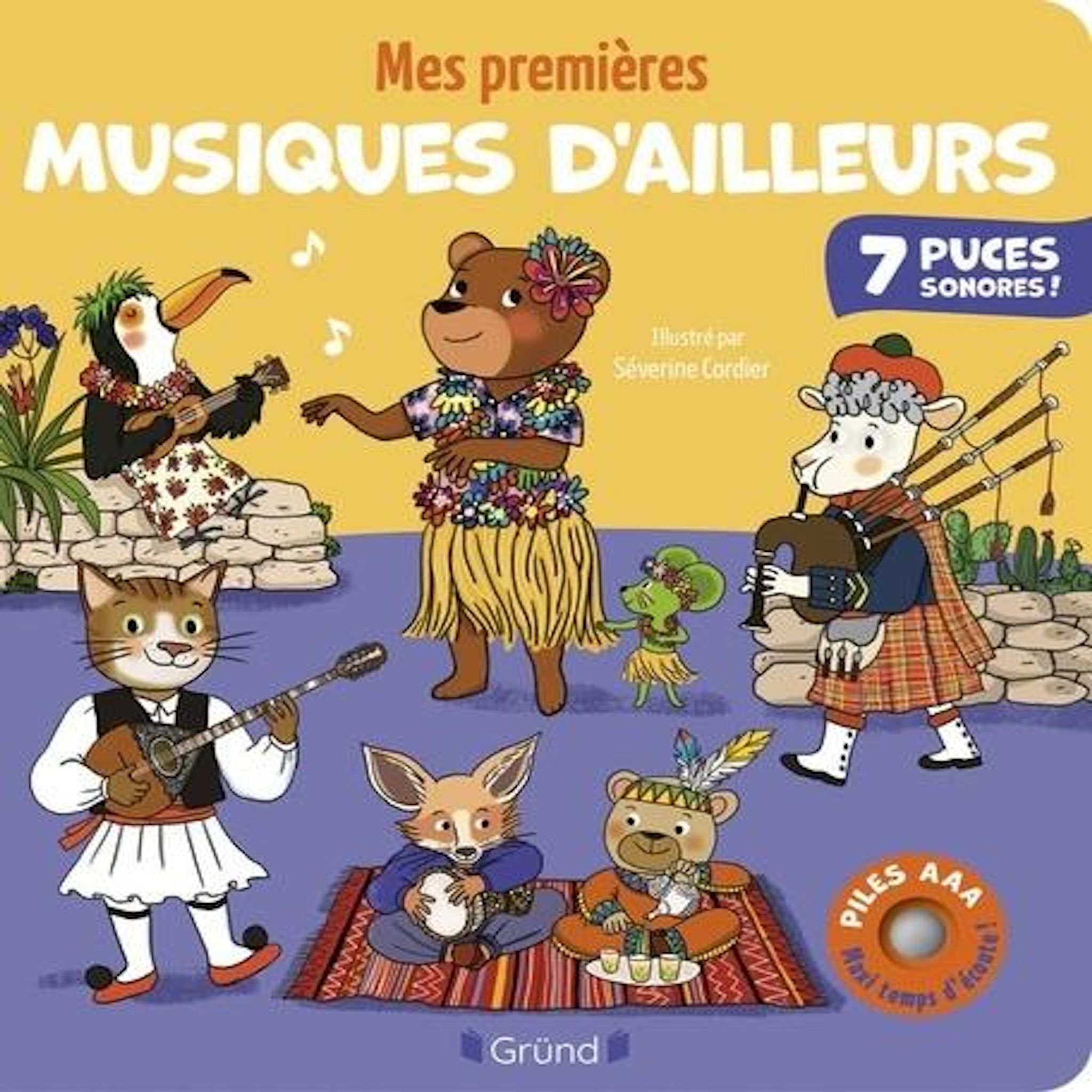 Un tour du monde musical pour éveiller les petites oreilles à la diversité des sons ! Ce livre sonore invite les tout-petits à découvrir 7 musiques traditionnelles du monde entier, soigneusement sélectionnées pour leur richesse sonore et leur accessibilité. Chaque page propose une illustration colorée représentant un pays ou une culture, accompagnée d'une puce sonore à activer pour écouter un extrait musical authentique. Un premier voyage sensoriel et culturel, en Ecosse, en Grèce, en Argentine, dans l'Ouest américain, à Hawaï, au Japon ou dans le désert du Sahara pour éveiller la curiosité, l'écoute et l'ouverture au monde dès le plus jeune âge. Nouveau : Un maxi temps d'écoute ! 7 puces sonores, 7 chansons, 2 piles AAA incluses, bouton volume réglable (fort, moyen, off) Une expérience encore plus riche, pratique et durable à offrir aux enfants !