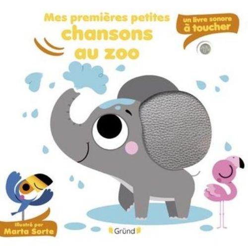 Ecoute tes premières chansons au zoo et touche les animaux du bout des doigts ! Avec ses puces sonores musicales et ses matières à toucher, ce recueil est unique. Sur chaque page, l'enfant recherche dans l'illustration le petit bouton qui déclenchera la musique et éveille ses sens en touchant des matières variées. Découvre l'adorable chanson Un éléphant ça trompe et caresse sa peau rugueuse. Danse avec Madame Hippopotame . Touche les poils tout doux des oreilles du Ouistiti et les bosses du chameau ! Découvre les animaux qui sortent du chapeau du magicien ! Les illustrations de Marta Sorte adaptées aux tout-petits accompagnent ce voyage musical et sensoriel.
