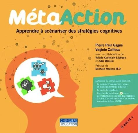 Les outils d'intervention de MétaAction aideront l'apprenant à métacogiter afin de prendre conscience des stratégies à mettre en oeuvre pour mieux apprendre en contexte scolaire et dans la vie quotidienne. La trousse comprend : L'ensemble du matériel nécessaire à des interventions efficaces : jetons, plateau de scénarisation, plateau de jeu , Un guide d'utilisation qui présente : Les modèles théoriques sous-jacents à la scénarisation neurocognitive et aux habiletés cognitives et exécutives, ces dernières étant étroitement associées aux interventions qui visent à enseigner aux apprenants comment construire des stratégies , De l'information sur la métacognition, la flexibilité cognitive, l'attention, la mémoire, la pensée algorithmique et le cerveau des apprenants , Les outils de scénarisation cognitive , des exemples de scénarisation de stratégies , un répertoire d'activités associées aux apprentissages scolaires et sociaux , Un accès à la plateforme interactif permettant de scénariser des stratégies à l'aide d'un ordinateur, d'une tablette ou d'un tableau numérique interactif (TNI). La trousse d'intervention MetaAction vise à aider l'apprenant à : organiser dans sa tête les contenus qui lui sont présentés , gérer sa mémoire de façon efficiente , enrichir son langage intérieur (vocabulaire de gestion cognitive) , apprendre à créer ses procédures mentales , apprendre à gérer ses ressources cognitives , planifier ses actions cognitives , vérifier par lui-même s'il apprend de façon efficace. Grâce à l'outil de scénarisation, l'apprenant peut saisir et manipuler les objets cognitifs : Les transactions sensorielles liées à la saisie des informations provenant de l'environnement (regarder, écouter, etc.) , Les actions cognitives liées à la gestion mentale de l'information (se parler de ce que l'an voit, imaginer la scène mentalement, etc.) , Les relations entre des transactions sensorielles et des actions cognitives.