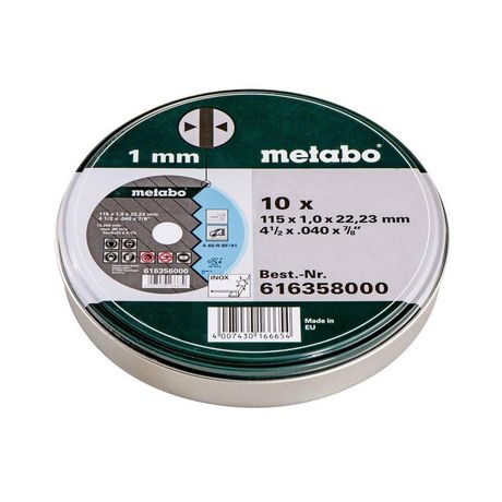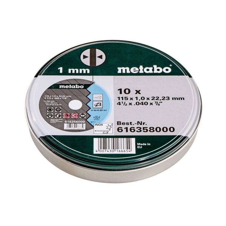 Meule universelle pour le travail des aciers inoxydables.Sans fer, ni soufre, ni chlore (Fe + S + Cl &le, 0,1 %)Bonne capacité de coupe et bonne longévitéFaible consommation de matériel, travail peu fatigant, sollicitation réduite de la machineCaractéristiques techniques : Classe de qualité : A 60 R