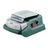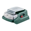 Adaptateur multifonctions compact, utilisable comme station de chargement, comme source d'énergie et comme lampe Raccord USB rapide pour le chargement et l'utilisation d'appareils USB (courant de charge max. 2 Ah) Raccord de 12 V pour la veste chauffante Metabo Fonctionne avec toutes les batteries c