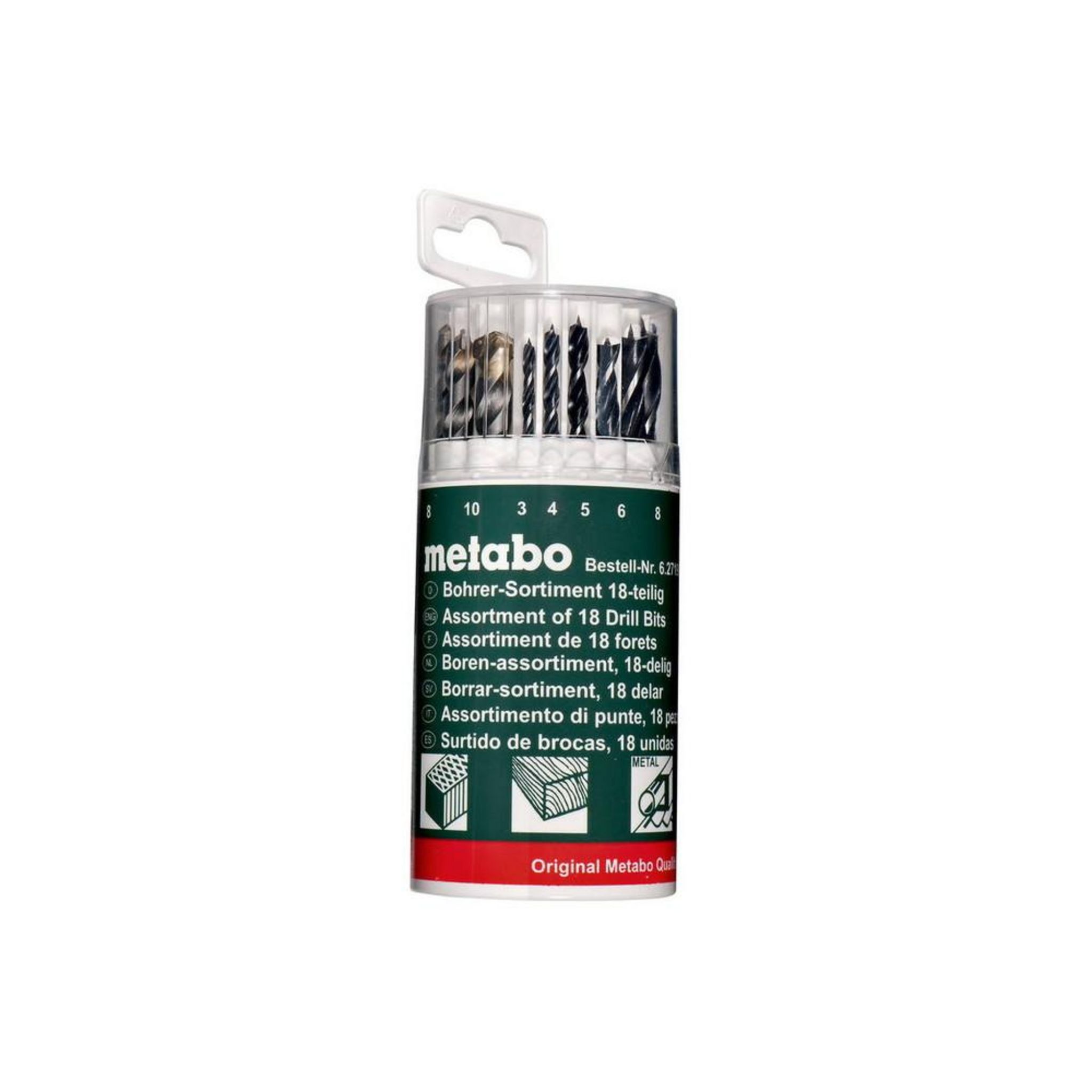 Coffret avec assortiment de 18 forets à métaux, à bois