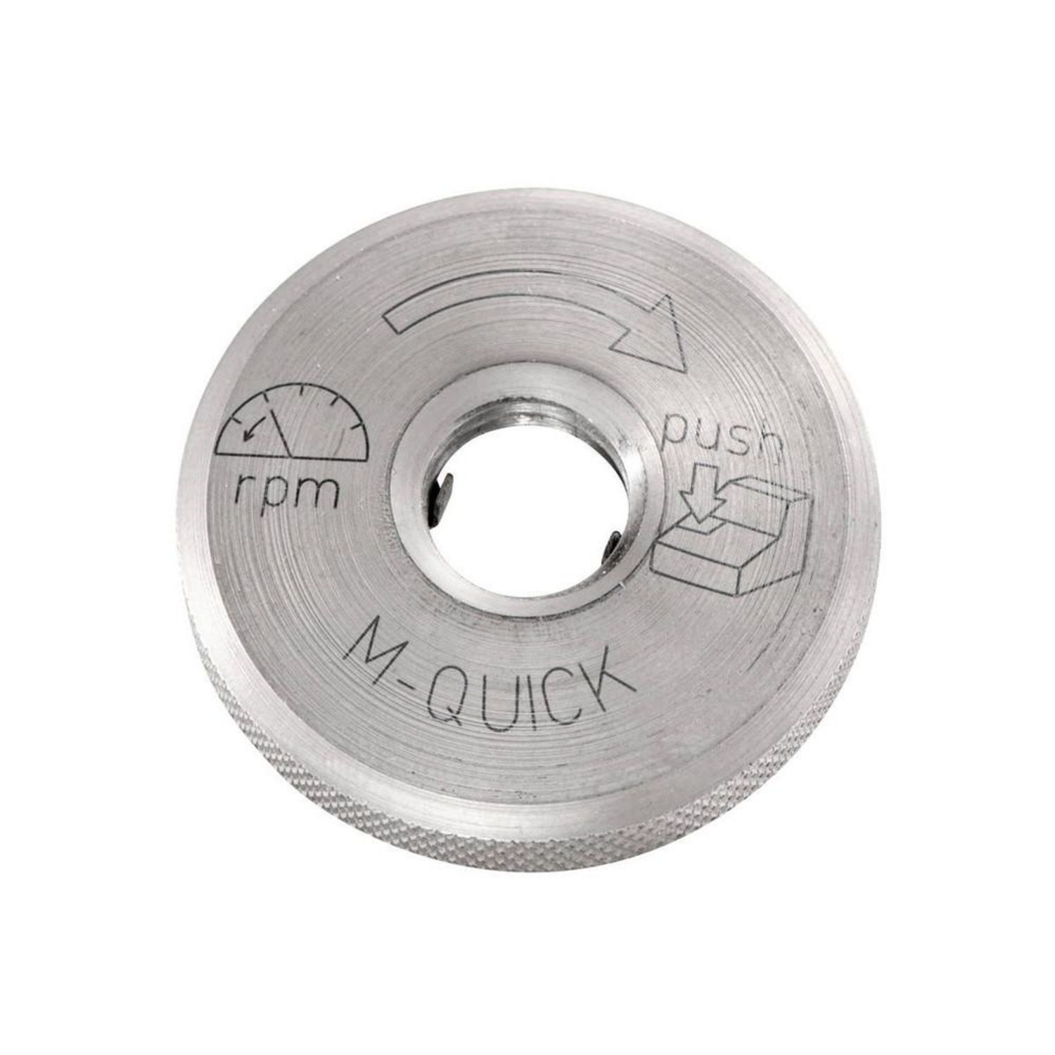 - Spécialement pour le système Metabo Quick pour le changement de meule sans outil sur simple pression d'un bouton. Compatible avec toutes les petites meuleuses d'angle Metabo avec bouton de broche M-Quick, sauf W 6-115, W 6-125, WB 11-125, raccord fileté M 14 nécessaire