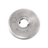 Spécialement pour le système Metabo Quick pour le changement de meule sans outil sur simple pression d'un bouton. Compatible avec toutes les petites meuleuses d'angle Metabo avec bouton de broche M-Quick, sauf W 6-115, W 6-125, WB 11-125, raccord fileté M 14 nécessaire