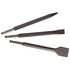 - Composé d'un burin pointu 250 mm, d'un burin plat 250 x 20 mm et d'un burin spatule 250 x 40mm