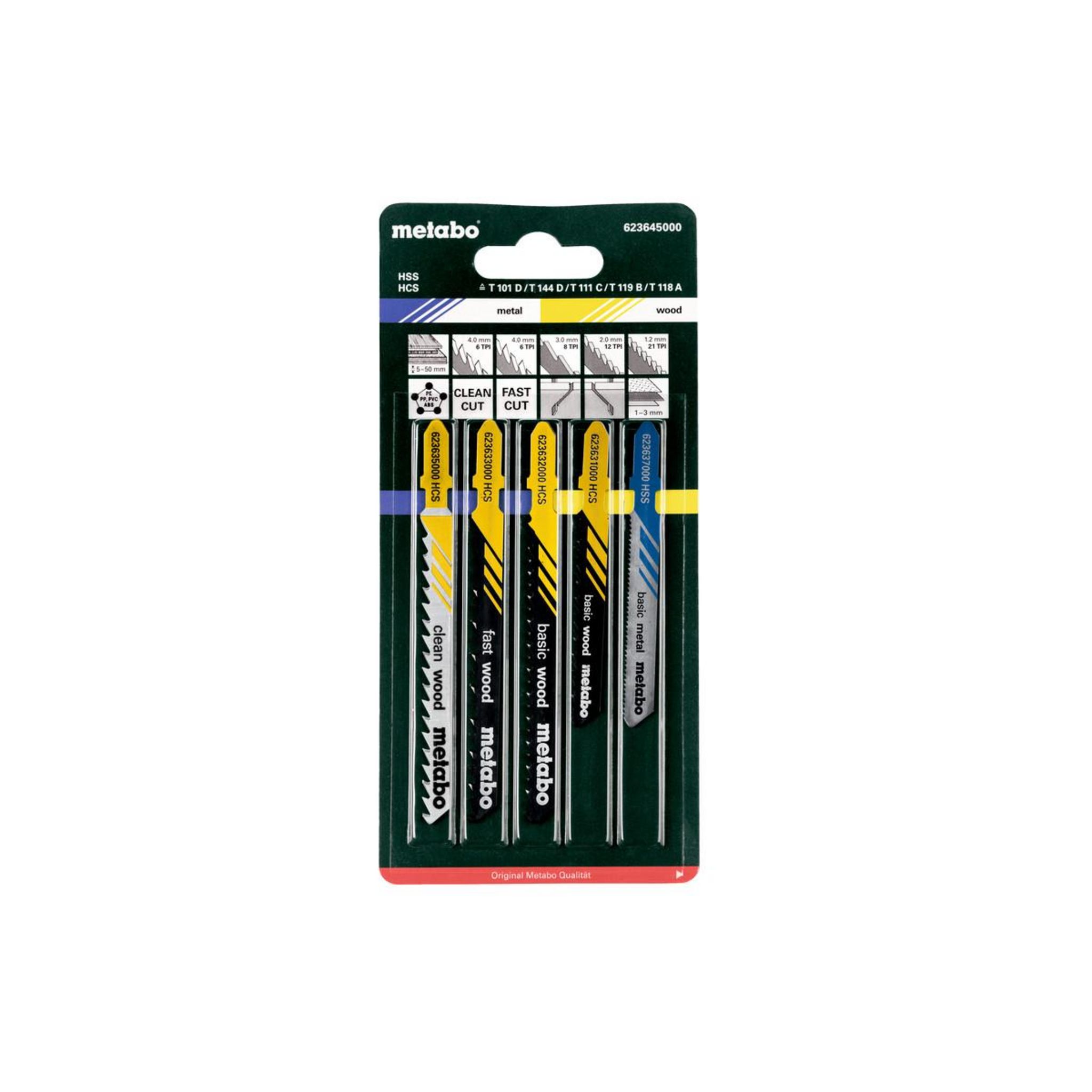 Pour le bois, le métal, les matières plastiquesLames de scie HCS / lames de scie HSSComposé d'une lame de scie 623633000, 623635000, 623632000, 623631000 et 623637000Caractéristiques techniques :Matériaux compatibles : Bois / Matières plastiques / MétalNombre de pièces : 5