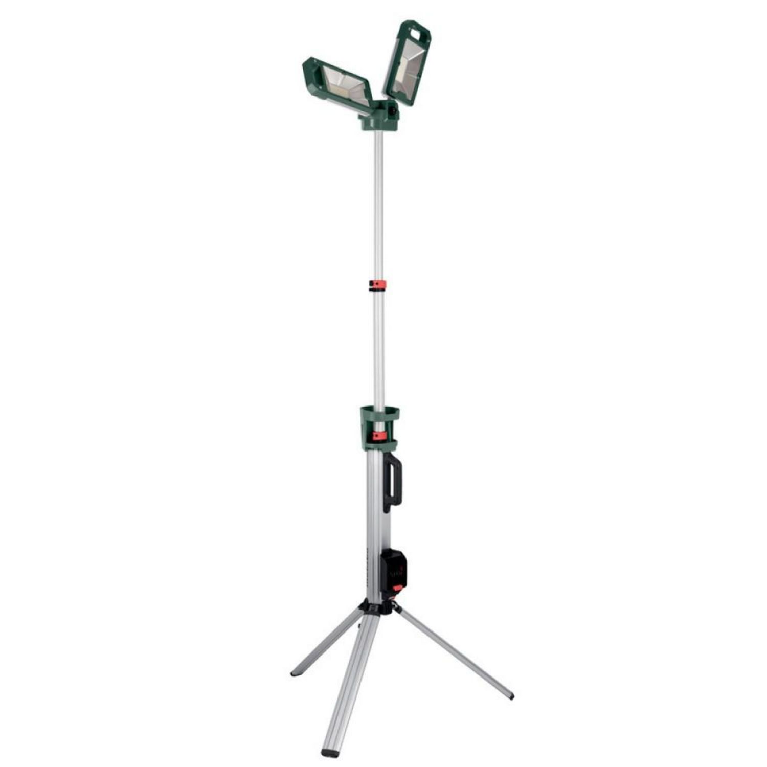 Lampe sur trépied avec deux projecteurs de 5 000 lumens réglables individuellement pour éclairer de manière flexible et efficace toute la zone de travail