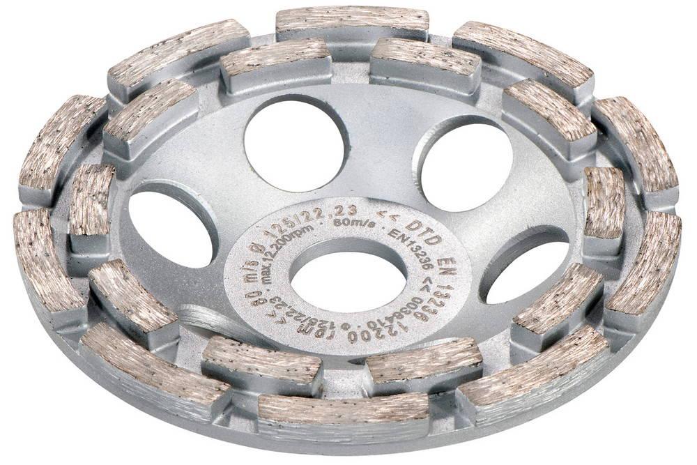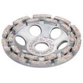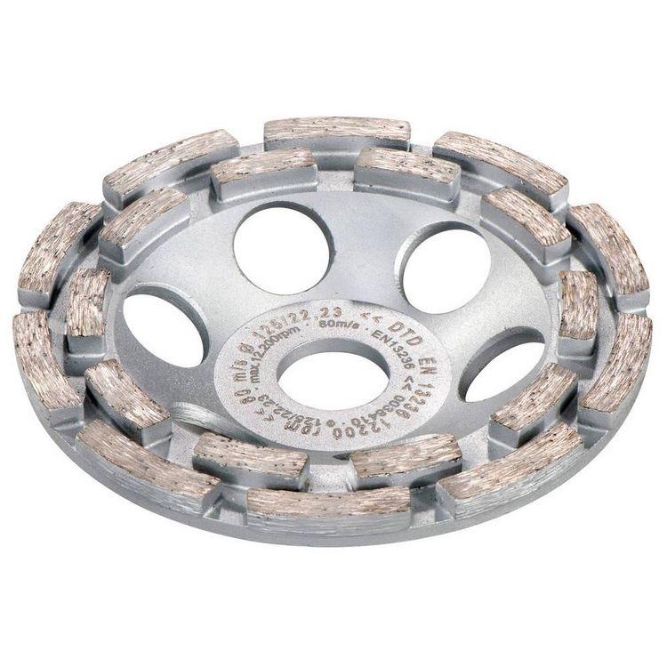 Meule-boisseau diamantée performante avec double revêtementConvient bien au ponçage de couches de béton épaisses, au nivellement de béton ou de granit et d'autres pierres naturelles, à l'élimination des enveloppes et des joints de coffrage, des enduits durs en ciment, en chaux-ciment, de la chape du
