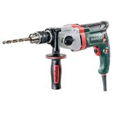 Carter de réduction robuste en fonte d'aluminium moulée sous pression pour une dissipation de la chaleur et une longévité optimales Balais autorupteurs rotatifs pour une puissance maximale, même en rotation à gauche, par exemple pour dévisser des vis bloquées Système électronique Vario (V) pour travailler avec des vitesses adaptées aux matériaux Molette pour la présélection de la vitesse de rotation Réducteur à deux vitesses Moteur Metabo Marathon avec protection brevetée contre la poussière pour une longévité élevée Débrayage de sécurité Metabo S-automatic : débrayage automatique de l'entraÎnement en cas de blocage du foret pour travailler en toute sécurité Réversible droite/gauche Broche à six pans creux pour embouts de vissage pour travailler sans mandrin Poignée avec surface Softgrip antidérapante Câble avec rotule pour une grande liberté de mouvement au travail Valeurs de référence Puissance absorbée nominale 850 W Puissance utile 490 W Ø, de perçage dans l&rsquo,acier 13 / 8 mm Ø, de perçage dans le bois tendre 40 / 25 mm Vitesse de rotation à vide 0 - 1100 / 0 - 3100 /min Vitesse de rotation en charge nominale 640 / 1800 /min vitesses 2 Couple de rotation max. 36 / 14 Nm Diamètre du collier de serrage 43 mm Ouverture de mandrin 1.5 - 13 mm Broche de perçage à six pans creux 6.35 mm Filet de broche de perçage 1/2 -20 UNF Poids sans câble 2.6 kg Longueur de câble 4 m Vibration Perçage du métal 4.2 m/s2 Incertitude de mesure K 1.5 m/s2 Émission acoustique niveau sonore 85 dB(A) Niveau de puissance acoustique (LwA) 96 dB(A) Incertitude de mesure K 3 dB(A) Équipement standard Mandrin à clé Clé de mandrin Poignée supplémentaire