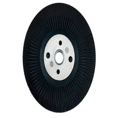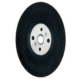 Pour utiliser des meules en fibresLes plateaux avec ailettes de refroidissement sont surtout utilisés pour les travaux de ponçage grossiers. Conviennent également pour le travail de l'acier inoxydableLes ailettes de refroidissement disposées radialement sur la surface de ponçage réduisent la surchau