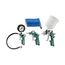 Ensemble composé d'une soufflette, d'un pistolet de gonflage des pneus, d'un pistolet à peinture avec godet et d'un flexible