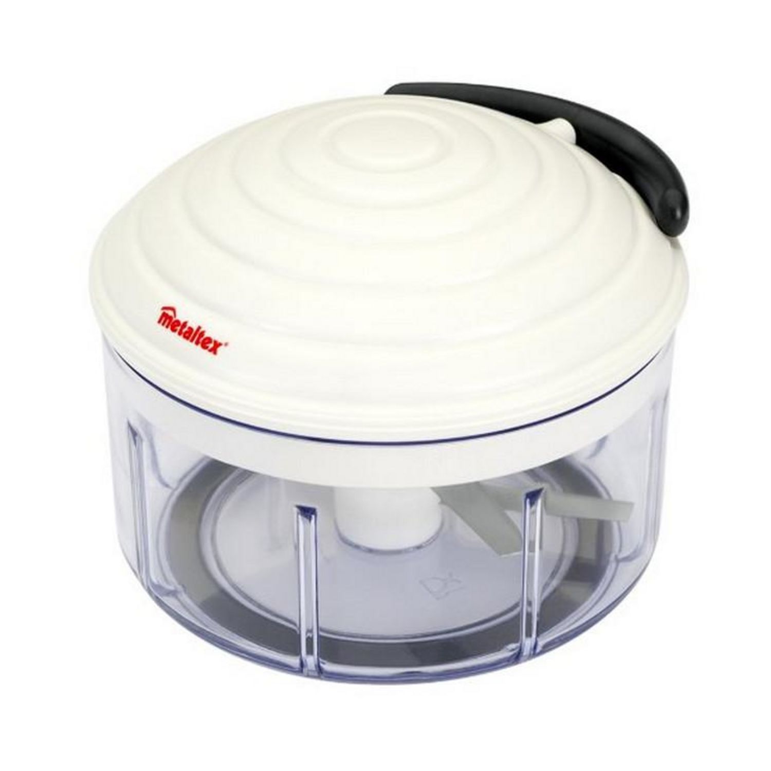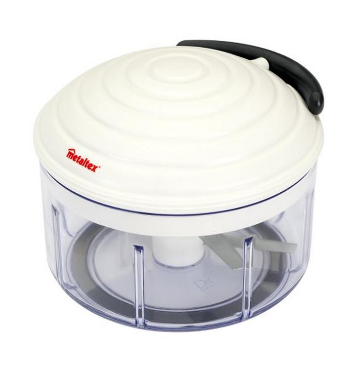 Metaltex 25.16.80 Hachoir manuel multi usages Rotomac 500ml Metaltex 25.16.80Il est simple, rapide et facile d'utilisation : quelques tractions sur la poignée suffisent à hacher vos herbes et légumes. La base en caoutchouc fixée sous le bol assure un bon maintien. Coupe oignons révolutionnaire avec