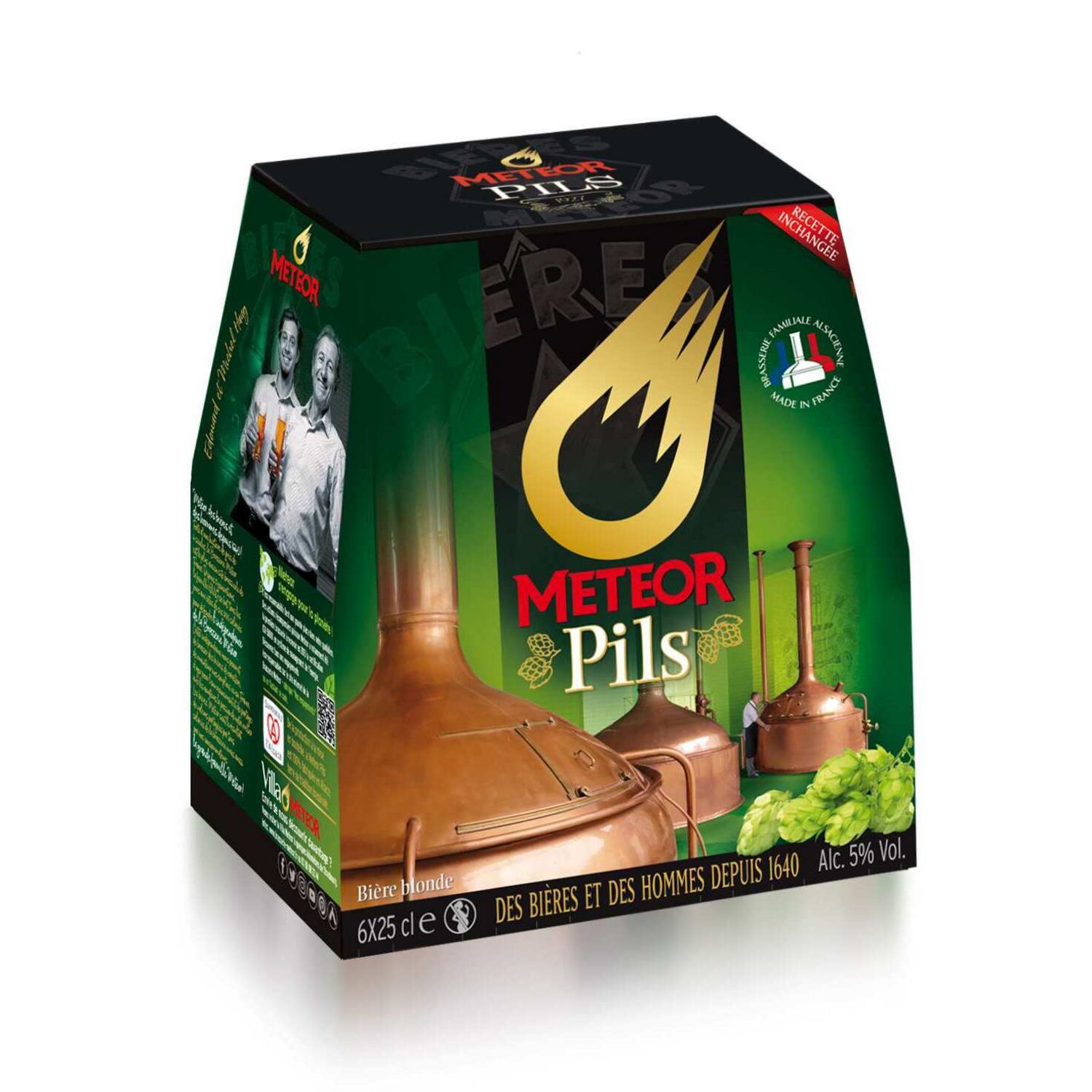 C'est en 1927 que Louis Haag crée Meteor Pils avec l'aide de son fils Frédéric. Imaginant une bière lumineuse à la mousse généreuse, ils obtiennent un goût unique finement aromatique en mariant des houblons supérieurs d'origines Tchèque et Alsacienne. Ce sont ces ingrédients rares qui font encore aujourd'hui la personnalité de la Meteor Pils.