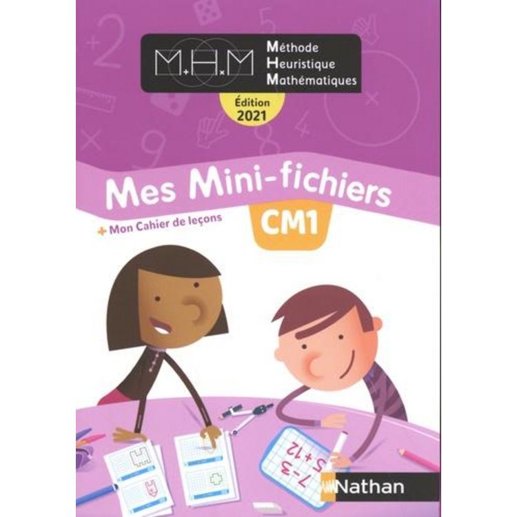 MHM : enseigner les mathématiques autrement avec plaisir et efficacité, grâce à la méthode heuristique de mathématiques ! Une édition 2021 enrichie suite à vos retours : ajout de plusieurs dizaines de pages au total : fichiers complétés ou nouveaux mini-fichiers + des bonus qui ne changent pas la méthode mais offrent de nouvelles ressources pour différencier ! Mes Mini-fichiers CM1 : - Une pochette regroupant 17 livrets d'activités pour l'élève + 1 cahier de leçons, à utiliser au fur et à mesure de l'année pour un travail en autonomie. - Une méthode qui développe la curiosité mathématique et respecte le rythme d'apprentissage et de travail de chaque élève. - Des situations mathématiques ancrées sur la manipulation et le jeu qui donnent du sens aux apprentissages. - Des activités originales et stimulantes pour que l'élève prenne plaisir à faire des maths. - De nouvelles leçons, notamment en résolution de problèmes. Des fichiers conçus pour l'élève ! - Un petit format pratique à manipuler et une jolie pochette pour ranger facilement les différents fichiers. - Une présentation agréable, en couleur, avec des pictos pour faciliter le répérage. - Une mise en page volontairement épurée qui favorise la concentration de l'enfant en limitant au maximum les effets distrayants. - Des activités de difficulté progressive à réaliser tout au long de l'année par les élèves, en autonomie. - Une progression précise, ludique et motivante. BONUS ! - Un cahier de leçons CM1 inclus, pour aider l'élève à retrouver une méthode, le sens d'une notion ou d'un mot. - Des liens pour accéder aux vidéos des fondamentaux de Canopé.