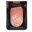 Ingrédients : viande de porc 59 %, fromage (LAIT) 20 % (fromage, beurre, eau, protéines, sel de fonte : E 331, acidifiant E330, colorant : E160a), glace, gras de porc, sel, sucres : dextrose, sirop de glucose, épices et plantes aromatiques, émulsifiant : E 450, plasma de porc, arômes naturels, antioxydants : E 301, E 300, conservateur : E 250.