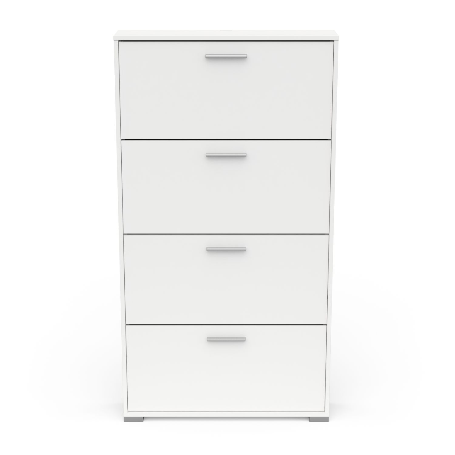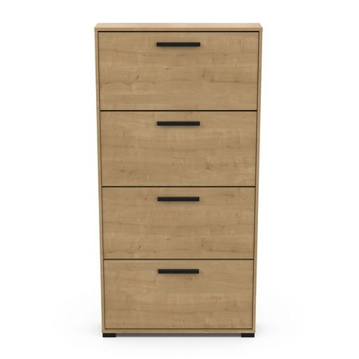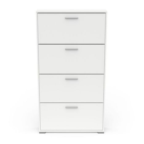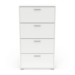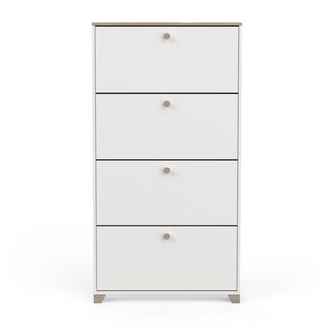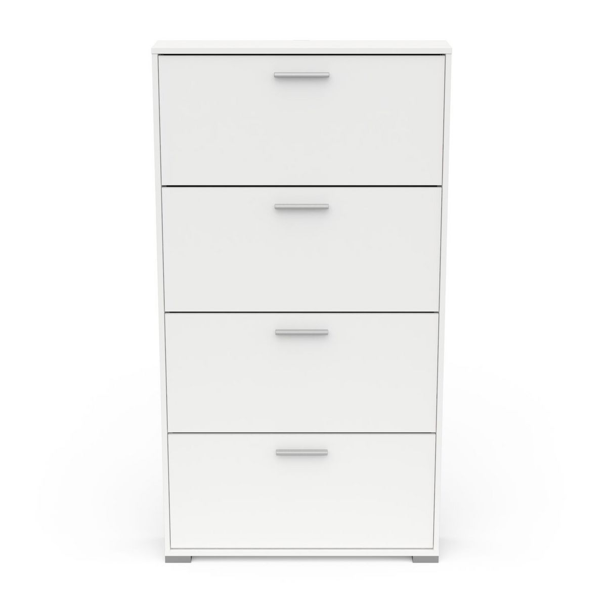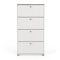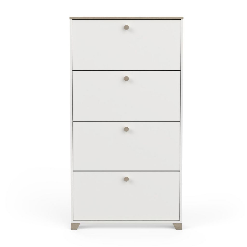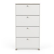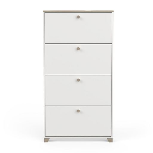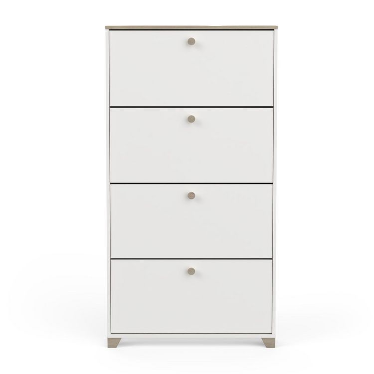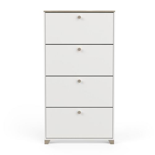 Rangement chaussures 4 abattants en panneaux de particules 15mm. Décor papier blanc mat. Capacité 12 paires à chaussures.