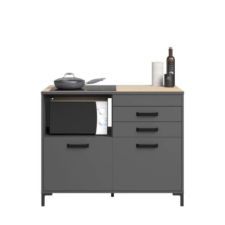 Structure en panneau de particules de 15mm - Coloris gris ombre - Pieds et poignées noires - Dim: L118 x P15 x H93 cm - Fabrication Française