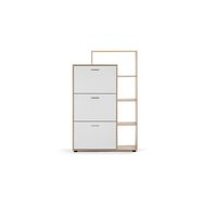 Le meuble chaussures 3 portes permet de ranger toutes vos chaussures en optimisant l'espace avec un espace de rangement pratique et efficace. Petit plus de ce meuble, des étagères pouvant servir de plateau pour votre décoration, papiers, plante... Un meuble design et idéal pour décorer votre entrée !