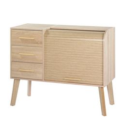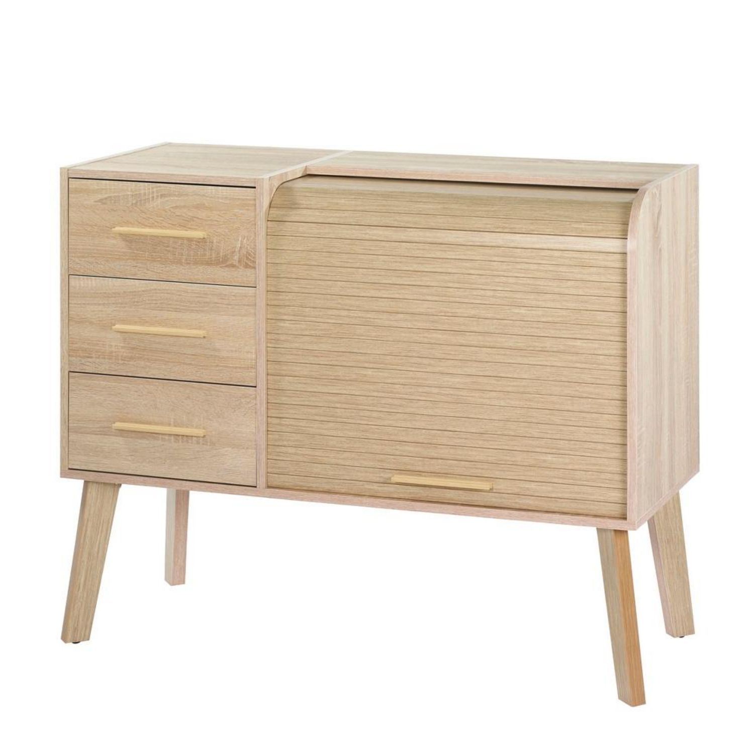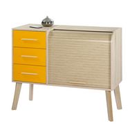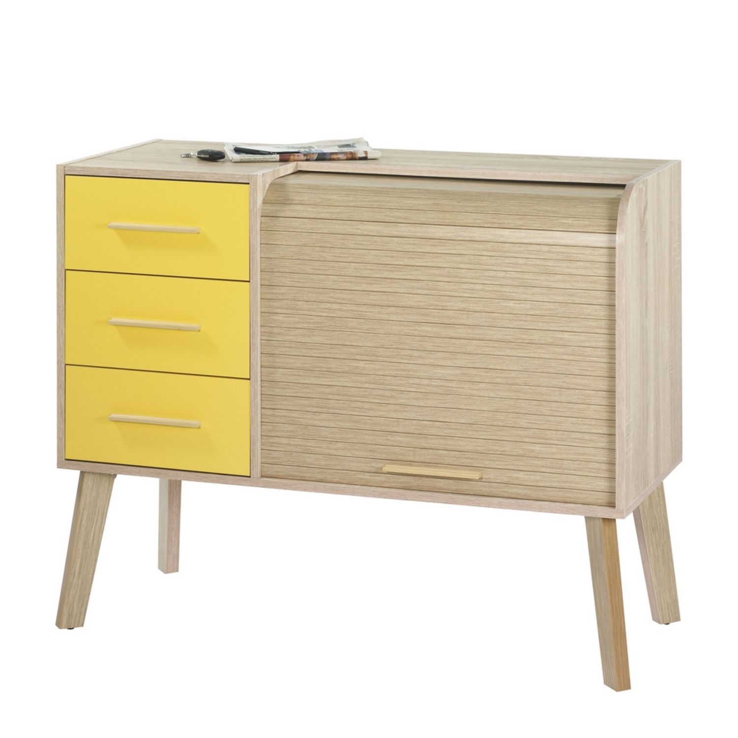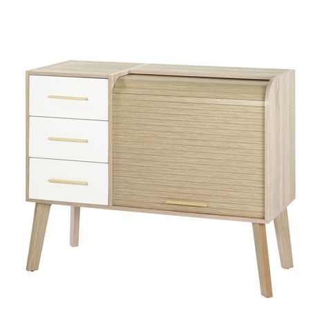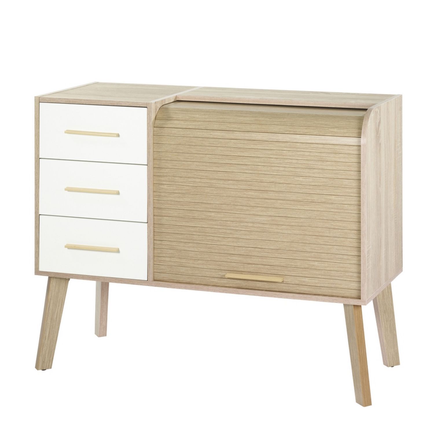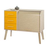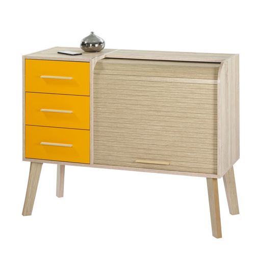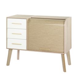 Un meuble éco conçu fabriqué en France et pratique pour votre entrée, grâce à ses 3 tiroirs et son rideau fermé qui permettront d'y ranger toutes vos affaires. Son look rétro avec des pieds biseautés et des formes arrondies lui procurent son style vintage très recherché.