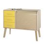 Pieds décor chêne - Fabrication française - Plusieurs coloris tiroirs possibles - Meuble éco-conçuMeuble d'entrée 3 tiroirs 2 niches avec rideau chêne SMILE/HAPPY