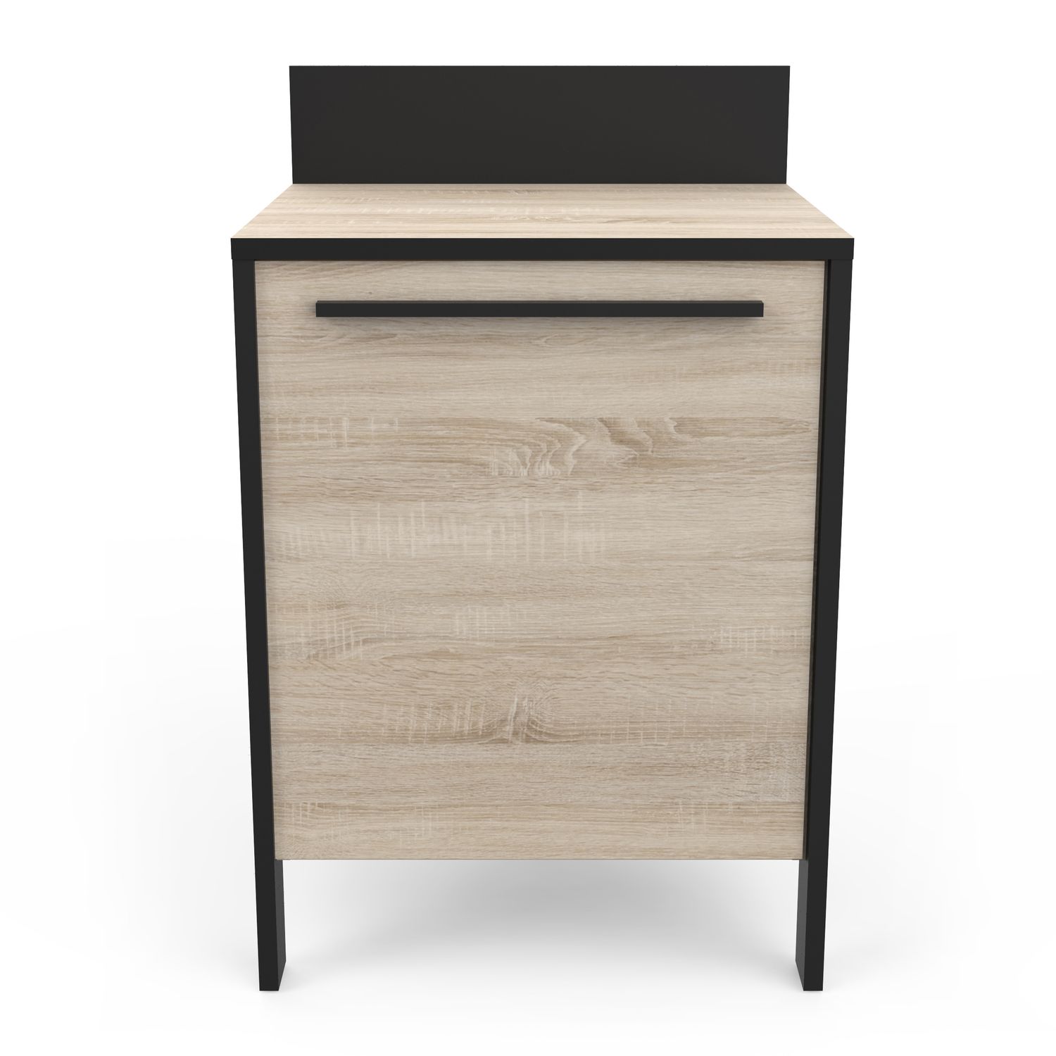 Bas 60 sous évier 1 porte en chêne brossé/noir mat