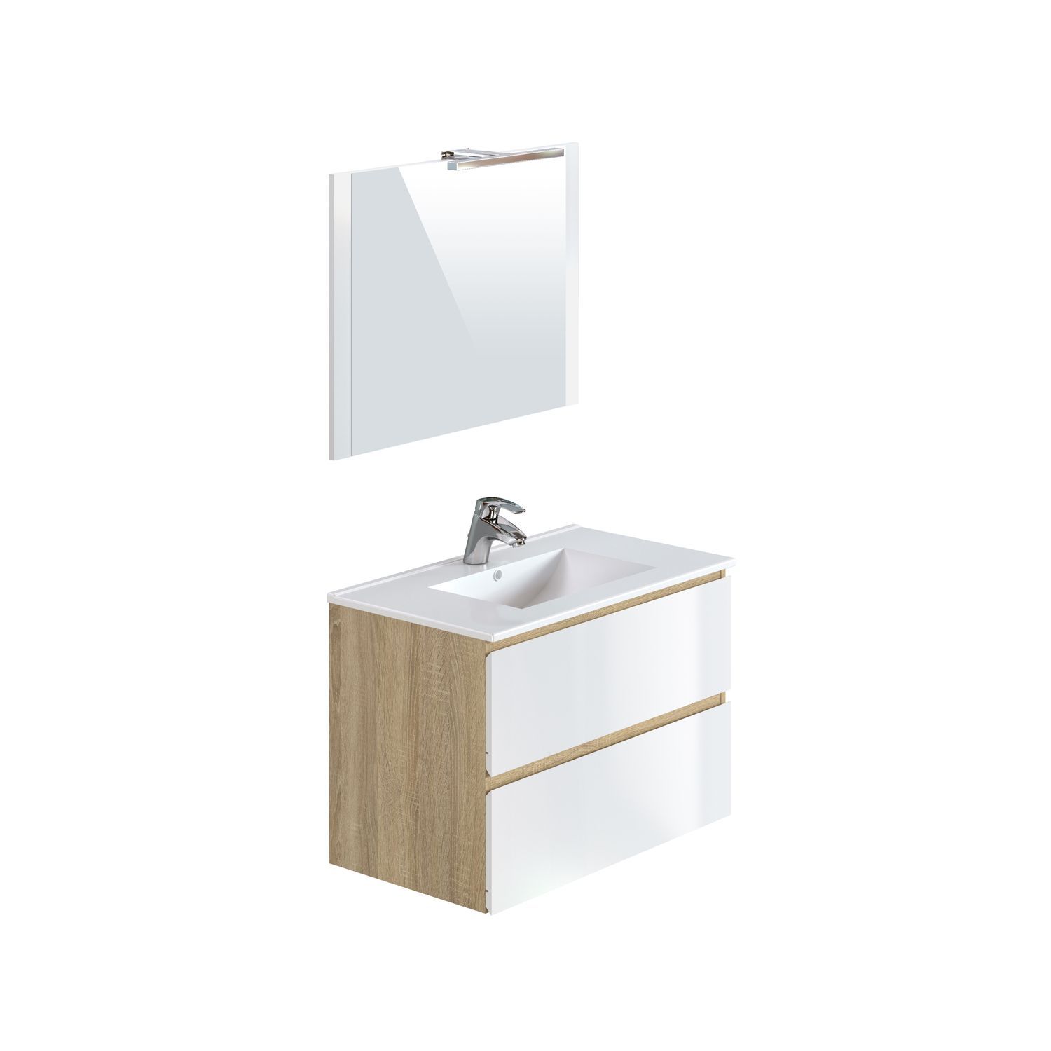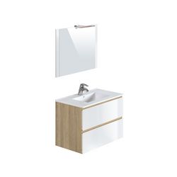 Meuble de salle de bain 1 vasque 2 tiroirs et miroir LED L80cm MILA