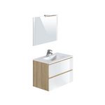 Mélamine coloris blanc brillant ou blanc brillant / chêne - Plan vasque céramique blanche - Fabriqué en Espagne