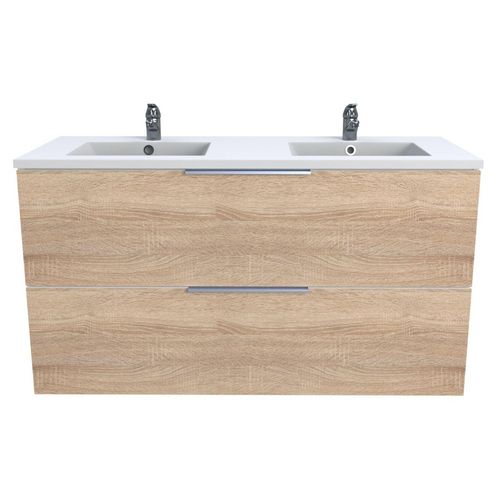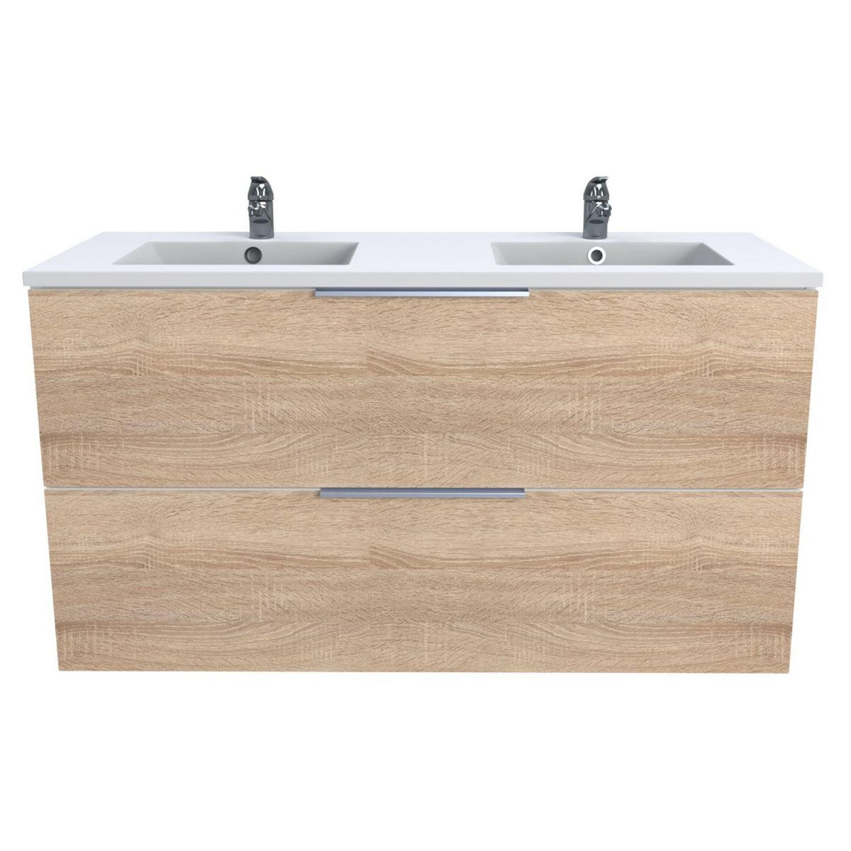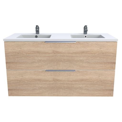 Double vasque inclue, 2 tiroirs, panneau de particules en mélaminée, coloris blanc ou bois