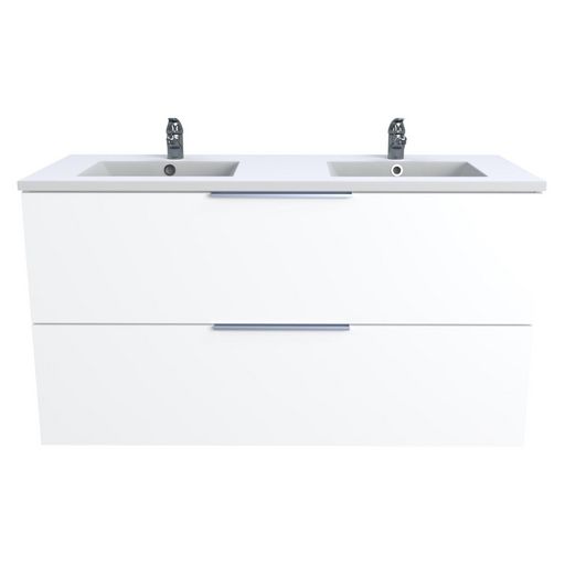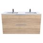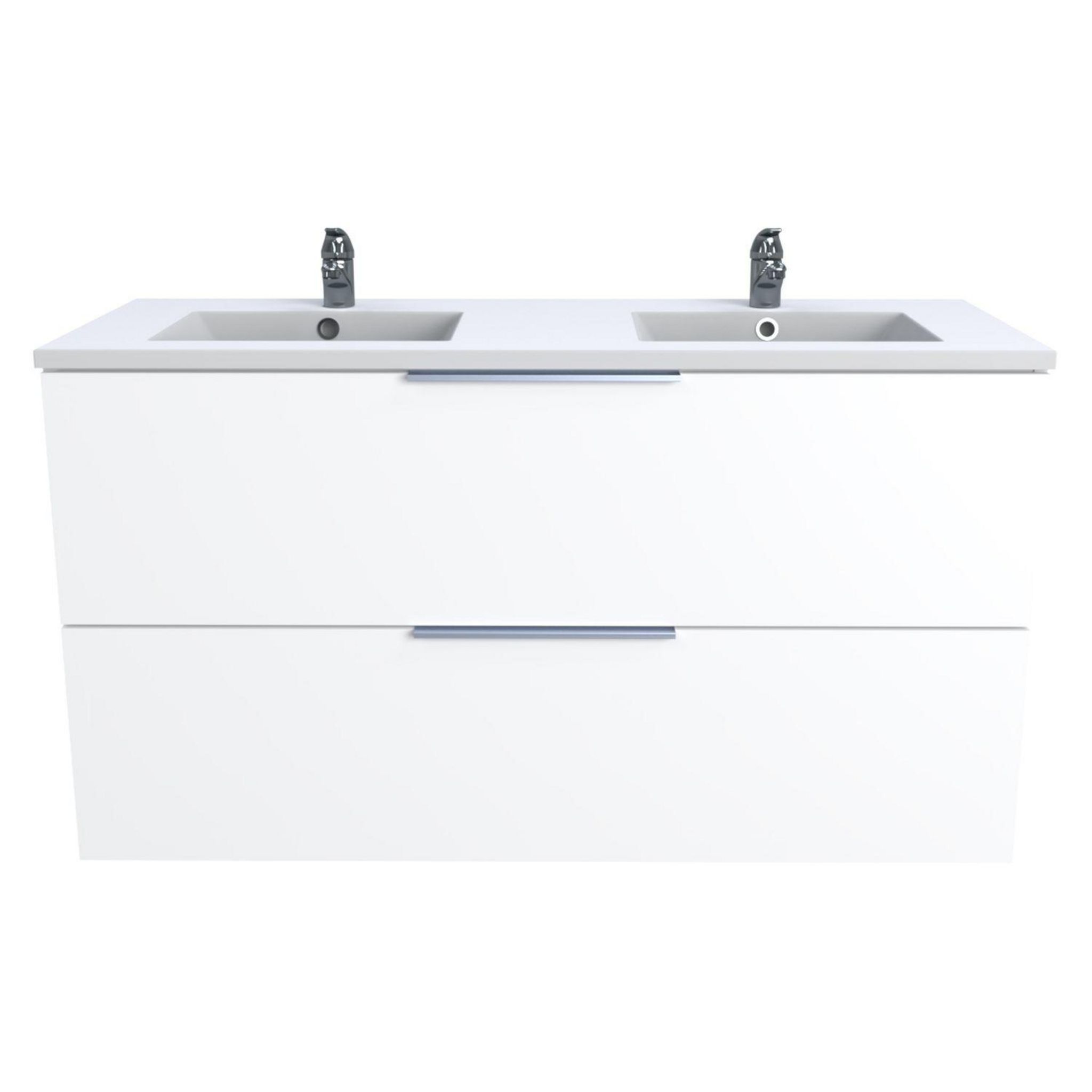 Meuble de salle de bain sous vasque avec double vasque encastrée 2 tiroirs, 120cm FARO blanc