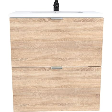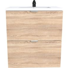 Vasque inclue, 2 tiroirs, panneau de particules en mélaminée, coloris blanc ou bois