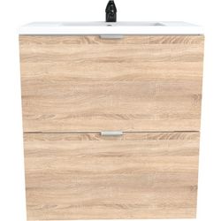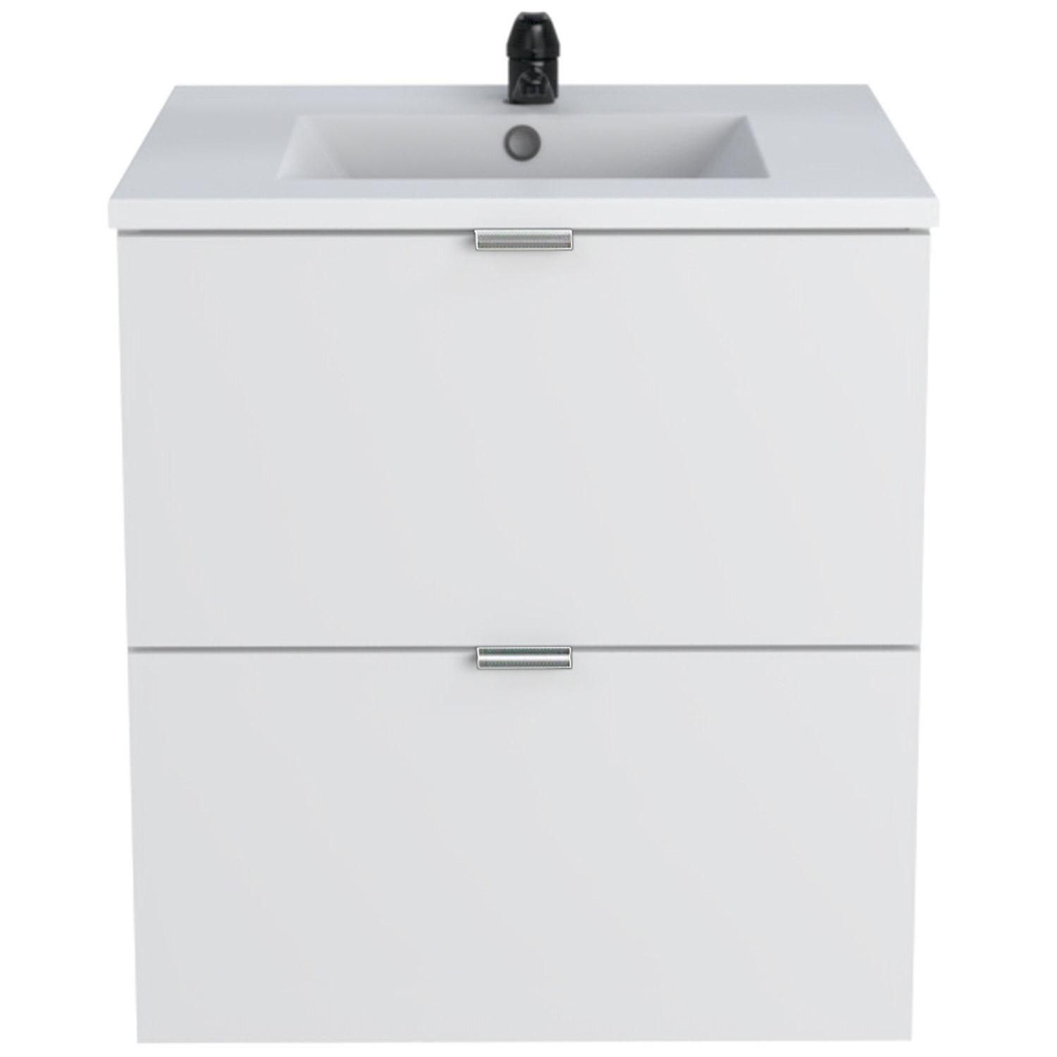 Meuble de salle de bain sous vasque avec vasque encastrée 2 tiroirs, 60cm FARO blanc