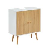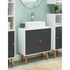 Adoptez le meuble sous vasque Alex pour moderniser votre salle de bain ! Avec son style scandinave, cet élément bicolore aux pieds bois comprends deux portes battantes avec une étagère pour un maximum de rangement.