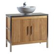 On aime le meuble de salle de bain en teck massif MODELIA ! Ses finitions parfaites, ses lignes épurées et la combinaison des matières (teck, béton, inox) lui procurent un style unique. Le bois donnera un ton exotique et naturel à votre salle de bain. Pratique avec ses 2 portes ouvrantes le meuble sous vasque MODELIA vous permettra de ranger tous vos accessoires de bain et sera idéal pour recevoir une vasque à poser (Vasque non vendue avec ce meuble) . Découvrez tous les produits de la gamme MODELIA sur Auchan.fr !