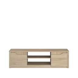 MEUBLE TV 2 portes, 2 niches centrales en panneau de particules revêtu papier décor Chêne
