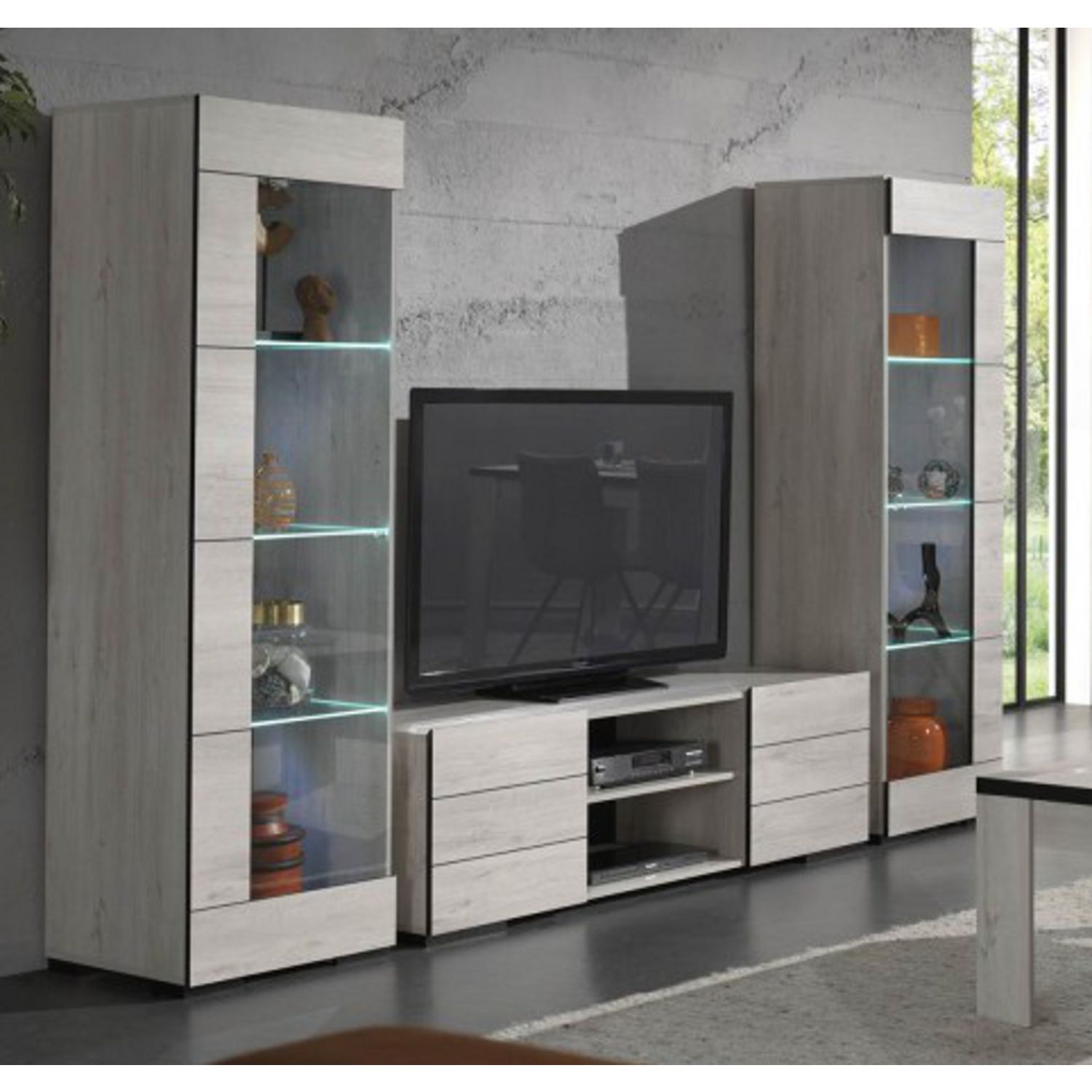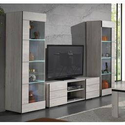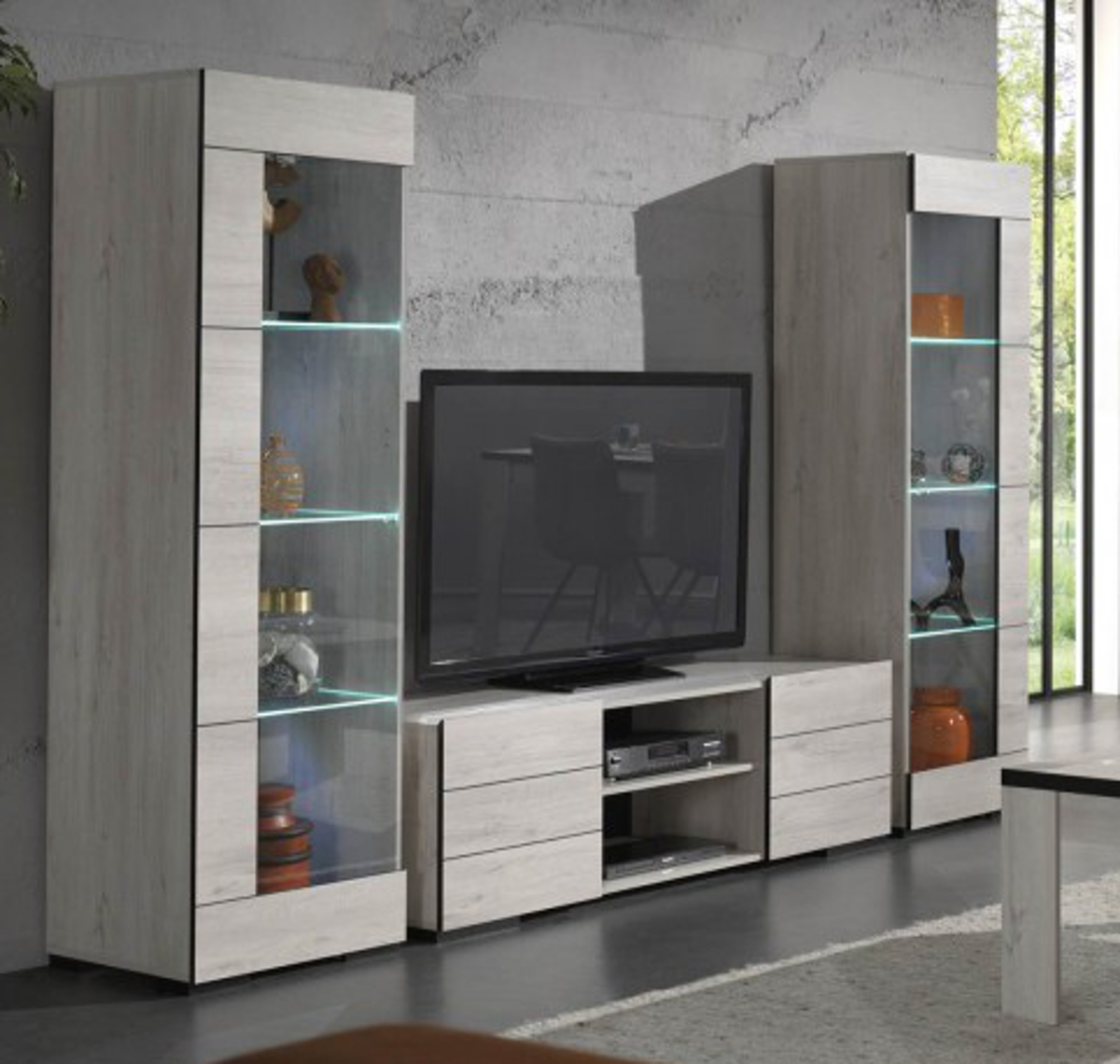 Laissez-vous séduire par cet ensemble meuble TV et 2 vitrines ALBA au design moderne et intemporel ! Le décor en chêne blanchi crée une merveilleuse sensation d'espace dans votre salon. Fabrication européenne. A monter soi-même.