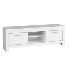 Le meuble TV blanc, saura sublimer votre espace salon. Retrouvez également les éléments de la même gamme tels que la table basse ou la vitrine. Pratique, ce meuble vous apportera du rangement grâce à ses deux portes et sa niche centrale. Un élément design pour une pièces moderne !
