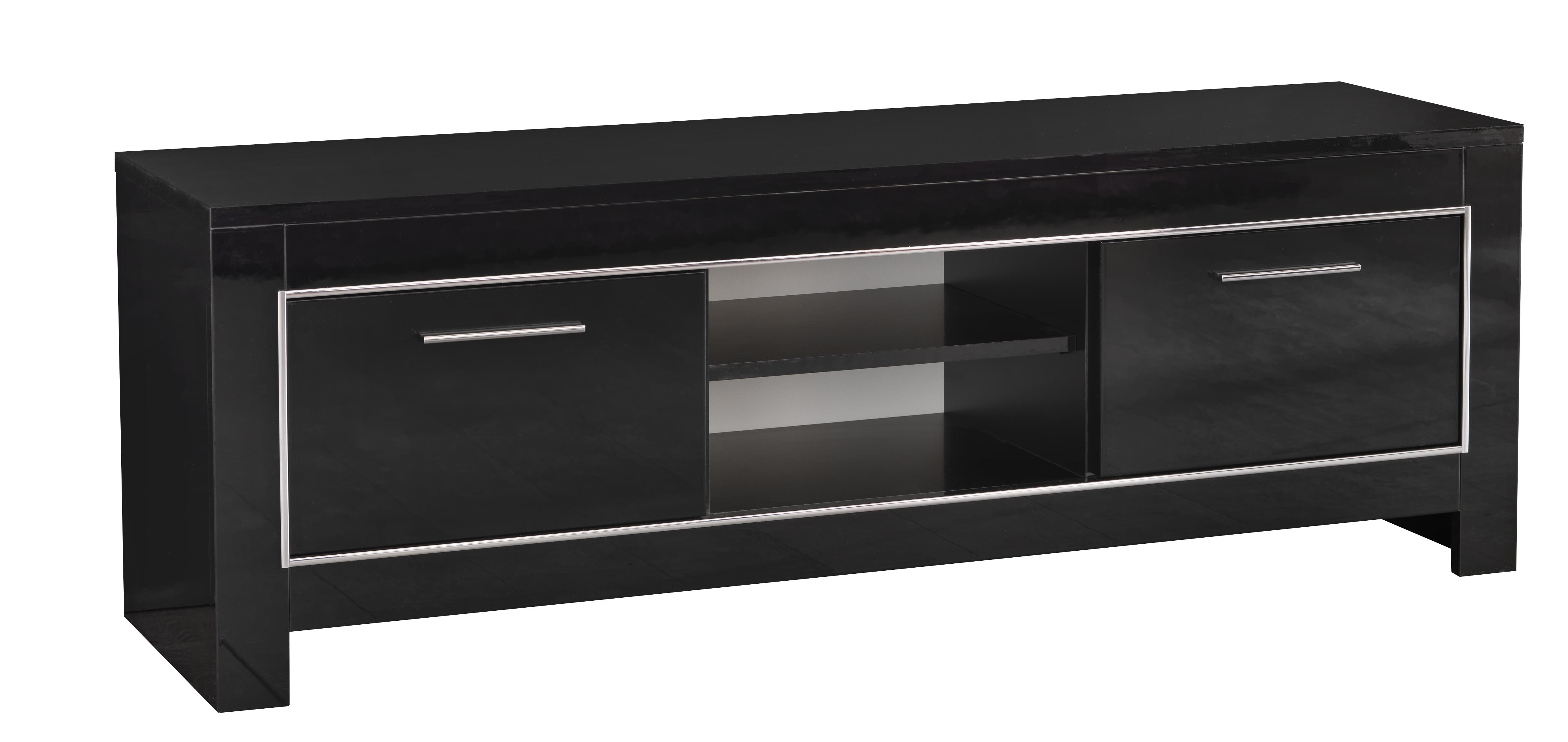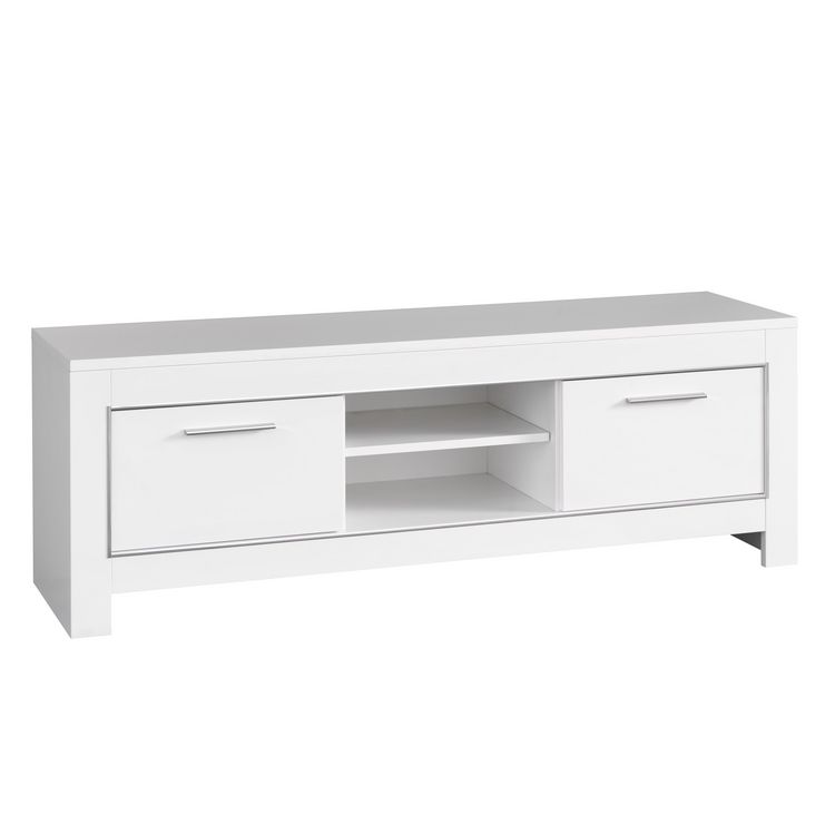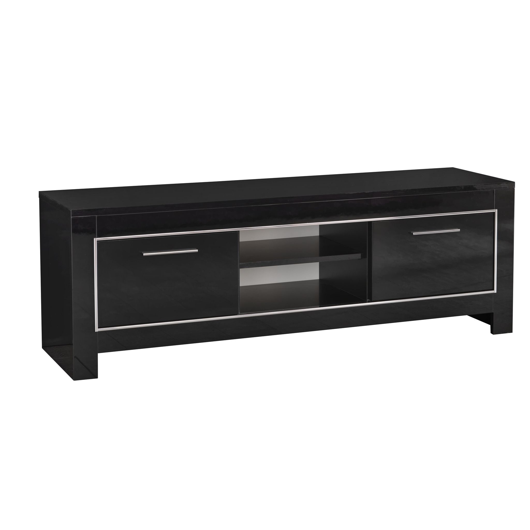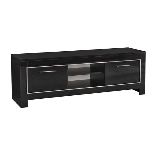 Meuble TV moderne 1 niche 2 portes laqué brillant L160 cm