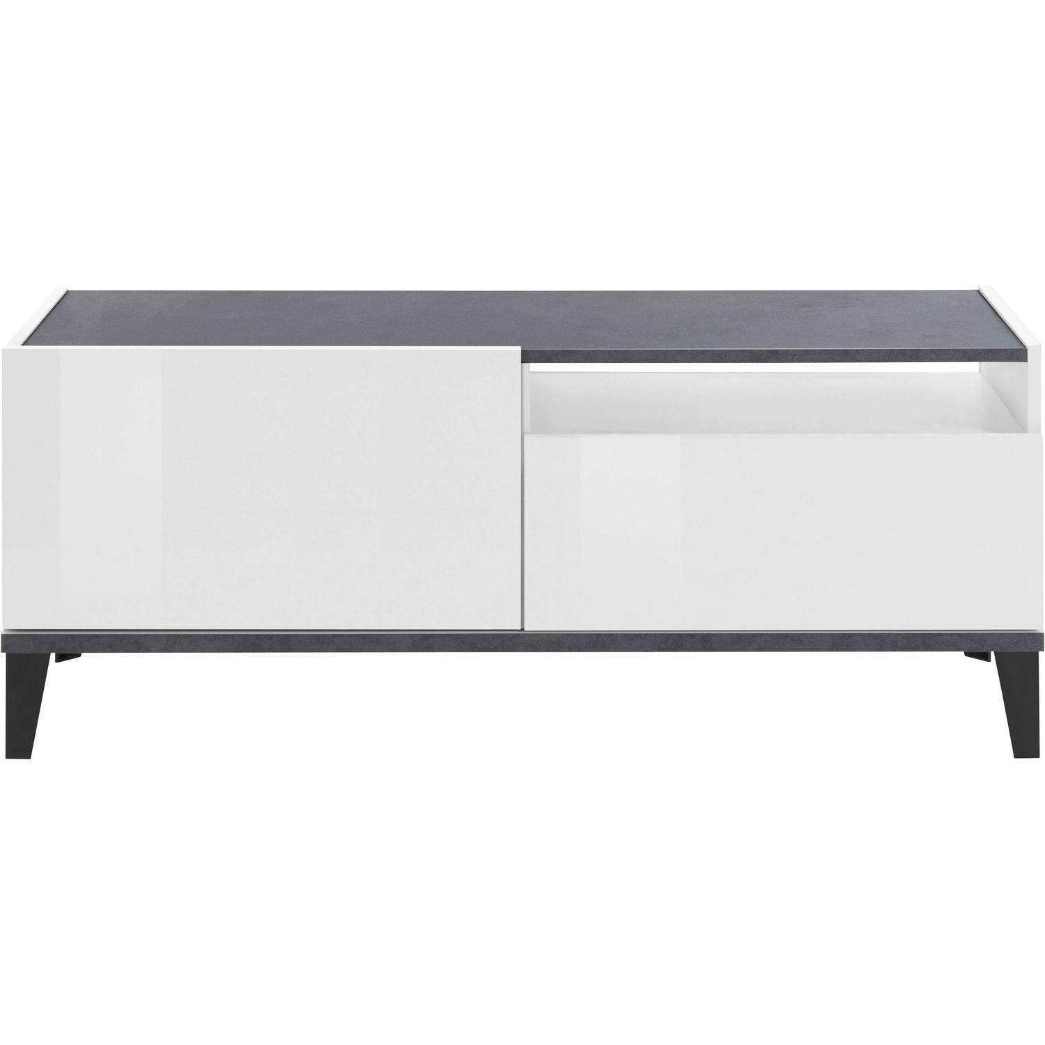 Le meuble TV Bari, de largeur 120 cm, trouvera immédiatement sa place dans votre salon avec son look moderne et industriel à la fois. L'association du blanc/effet bois ou ardoise/effet bois fera tout le charme de ce meuble de rangement pratique avec son tiroir, sa niche et sa porte battante. Il vous permettra d'y ranger vos accessoires multimédia facilement. Les pieds de ce meuble TV viendront également apporter le côté design et vous facilitera la nettoyage sous le meuble.